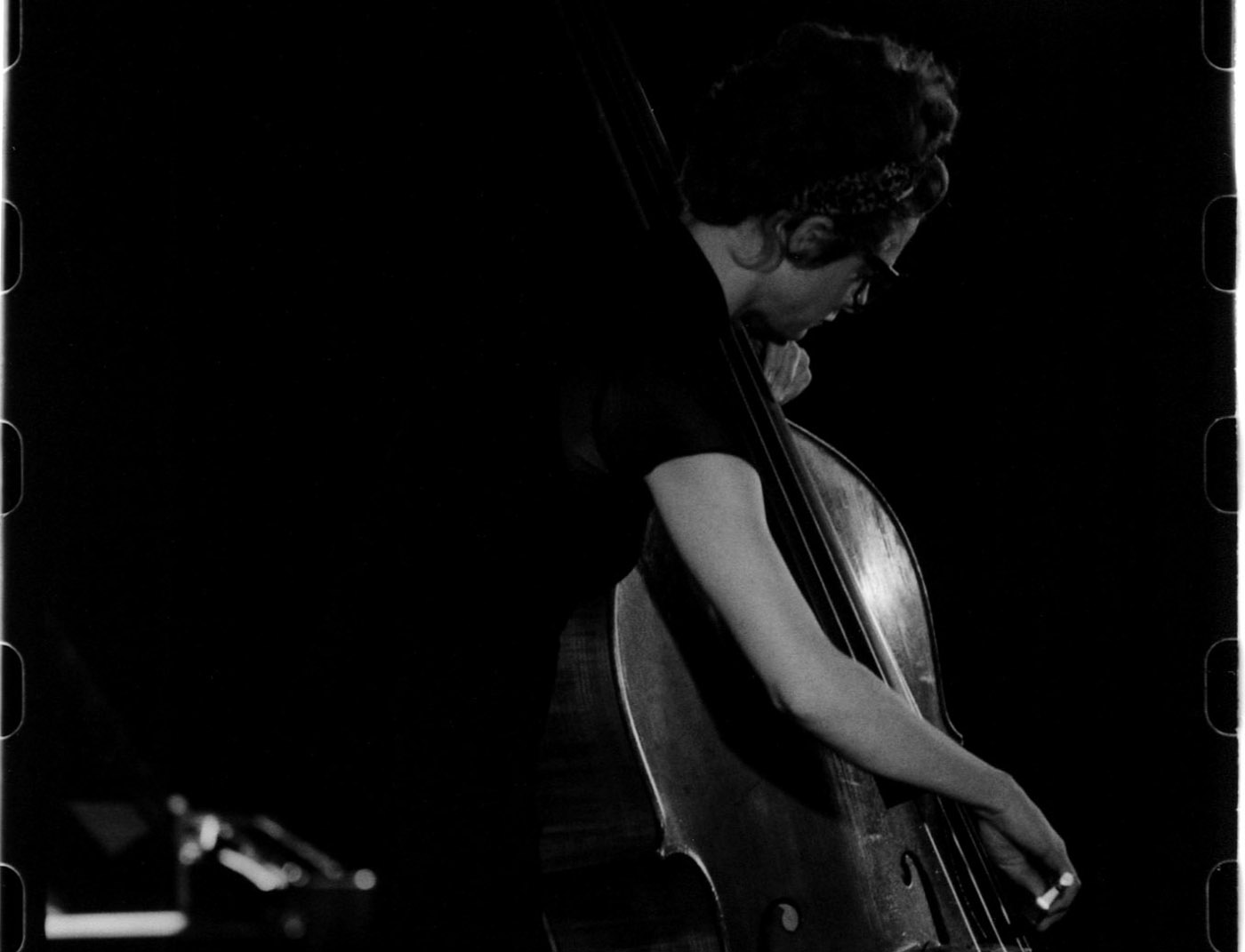 Félicie Bazelaire explore un dispositif singulier où la contrebasse est au centre de l’espace.
